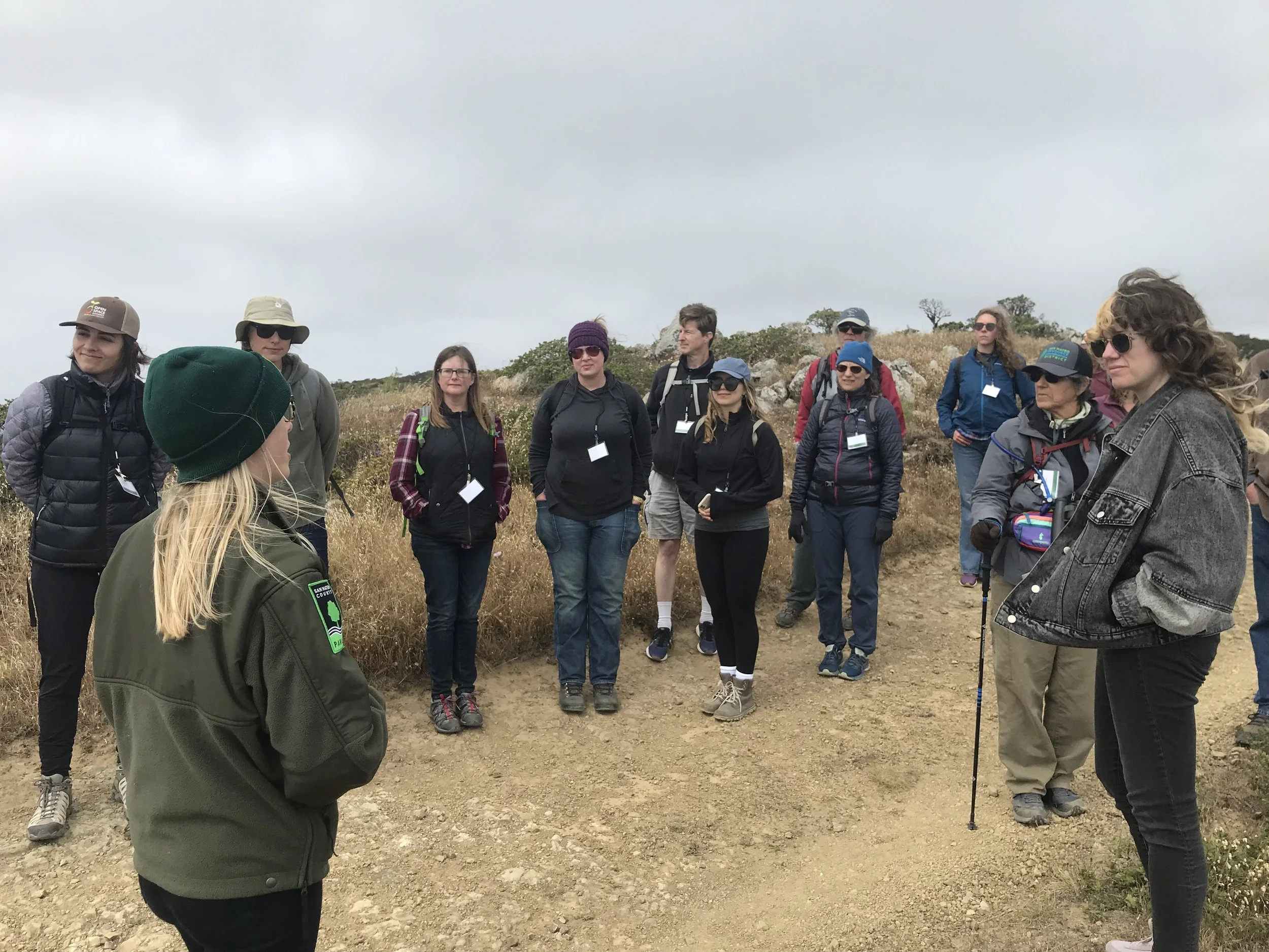 Laura Mclendon from sempervirens fund explains the history of the property to the spotlight stewardship participants.
